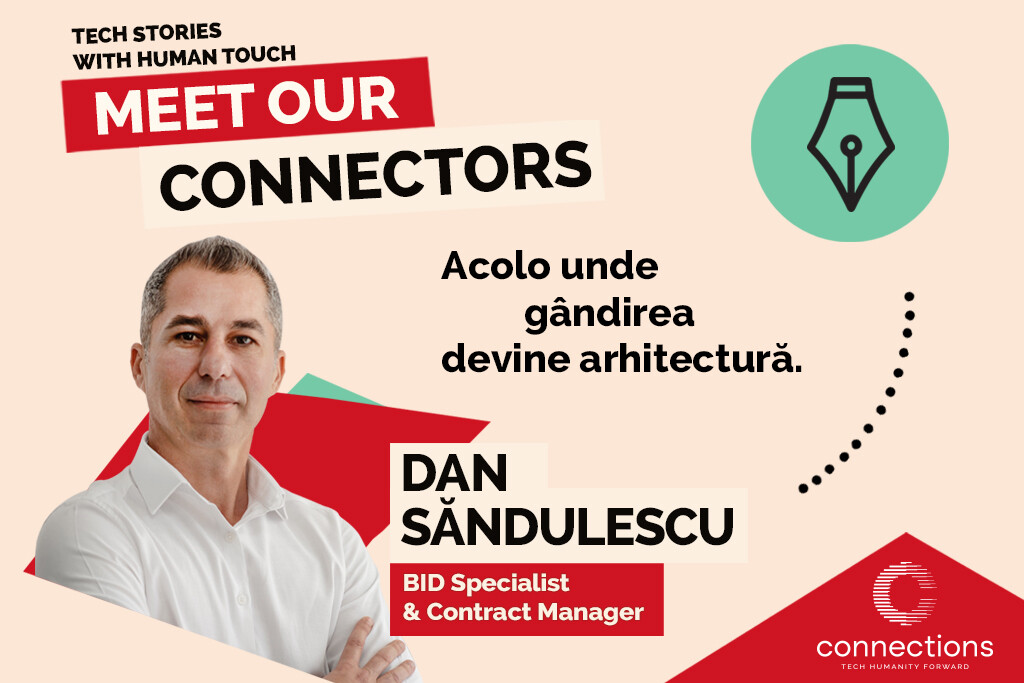 În cadrul Connections, Dan este specialistul care participă la întregul proces de creare și depunere a ofertelor, propunerilor și licitațiilor pentru noi contracte și proiecte sau, în termeni tehnici, BID Specialist & Contract Manager. Dar dincolo de titlul oficial, el este un om care își asumă constant responsabilitatea de a gândi „out of the box”, de a construi relații de lucru sănătoase și de a-și înțelege rolul nu doar prin ceea ce face, ci și prin impactul pe care îl creează.